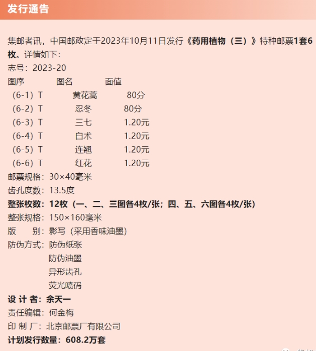 因为是面值零售的大版,整版套数少,因此《药用植物三》是今年纪特套票中的新低,只有608.2万!