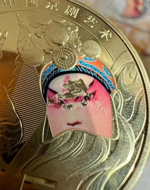 这不,有藏友拿到京剧币,觉得彩色部分看起来像“贴纸”一样,于是就动了动小手……
