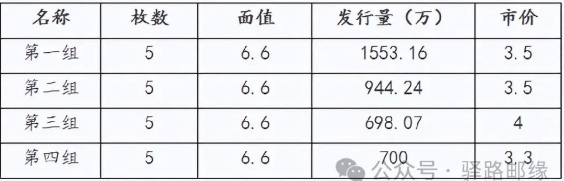虽然前两组发行量较大,但版式不同,第一组整版20枚,也就是77.66万版;第二组大版改成16枚,为59.02万版;第三组和第四组改成了12枚,大版数量为58万版。