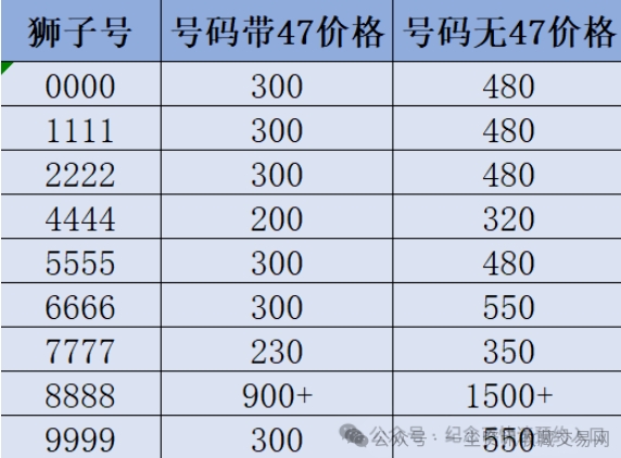 龙钞豹子号、狮子号的价格如下表所示,大家可以参考一下: