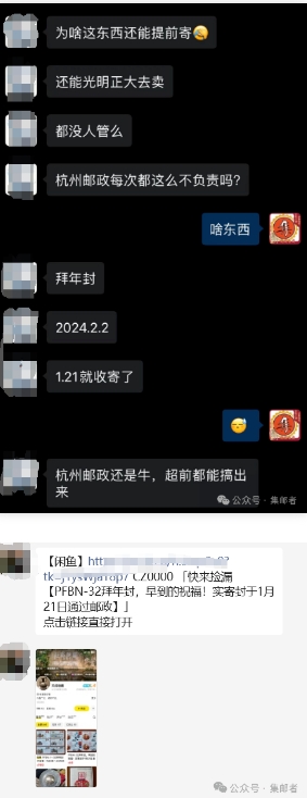 集邮者讯(JiCang.vip),最近几天有,多位邮友给我们发来的消息,龙年拜年封的早产封,原本2月2日才发行,而网上闲鱼、某宝各种提前销售的,甚至1月21日就有实寄出去了。