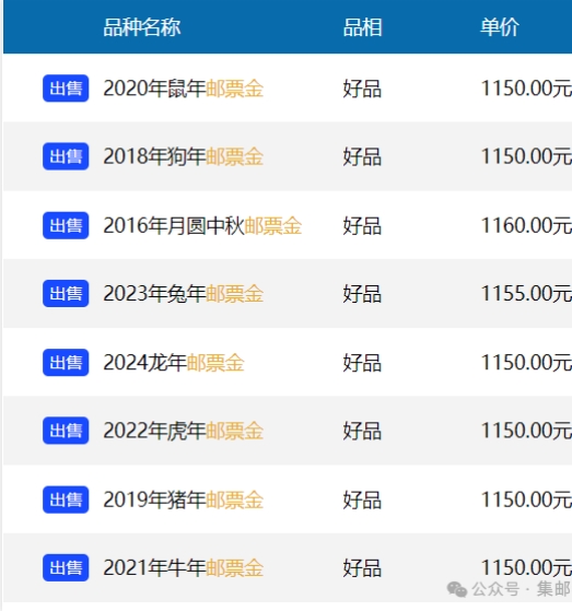 集邮者讯(JiCang.vip),今年随着金价的暴涨,曾经骨折的各种邮票金都开始上涨了,涨幅在100-200多不等。