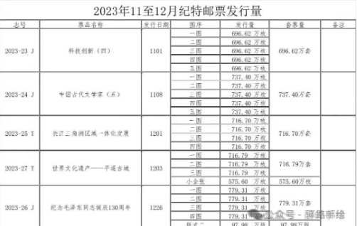 邮品快讯2则 日期:2024-08-23 一、中国邮政定于2024年9月5日发行PP344《开放的伊犁》普通邮资明信片一套1枚,面值80分,售价1元。采用胶印印制,邮资图规格46×30毫米(菱形),设计者刘晓磊,发行量33.6万枚。二、2023年11-12月纪特邮票发行量公布