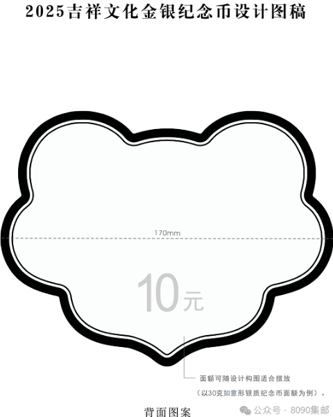 中国人民银行从2015年开始发行“吉祥文化”贵金属系列纪念币,至今已经发行成功发行十组,随着时间脚步,央行在面向社会征集设计图稿之时,也公布了将在2025年发行的“吉祥文化”表现内容:5克如意形金质纪念币1枚,面额80元,外接矩形18×24mm;30克如意形银质纪念币1枚,面额10元,外接矩形36×47mm,表现生辰之喜主题。主题词为:蔓蔓日茂