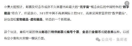 接着就是邮品数字藏品了,小集在2021年发文就聊过数字藏品了,小集当时就预测数字藏品,实物藏品+虚拟藏品,现在来看,小集预判的还是挺准的...