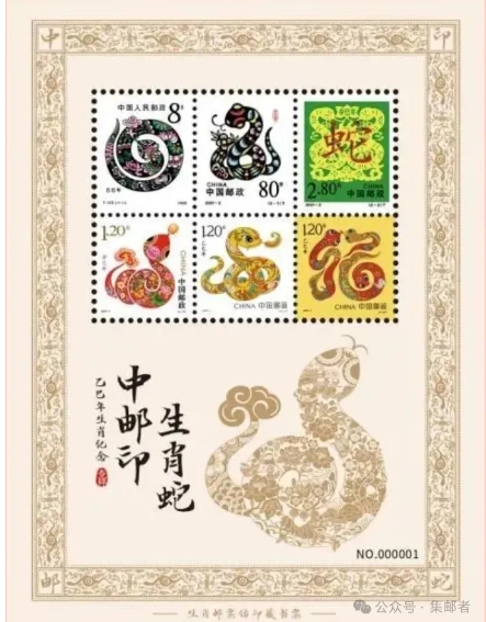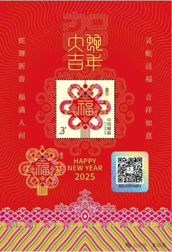 当时小集发文→2025蛇年贺年邮发行公告时,就有多位邮友提醒,还将发行一枚特殊版式的贺年蛇邮票。在上海亚展时,中邮的文化发布会中,正式公布了2025贺年蛇将发行新的版式,包含数字藏品的3元贺年蛇品种,这种只有邮局的产品册中包含,基本和这几年发行的贺年小版一样。但这种不是传统意义的摇号特供,而是产品册专供品种。