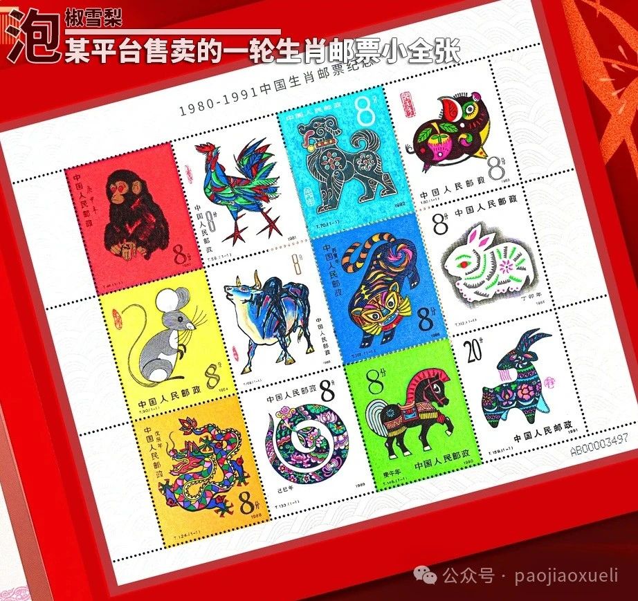 近期某平台公开始销售一种包含全部第一轮生肖邮票的小全张,介绍中称其采用雕刻版印刷且为邮政出品,售价则高达498元。