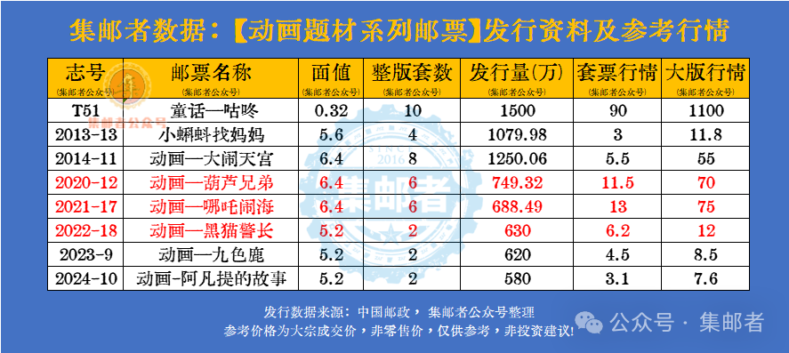 2022年动画题材邮票又迎来了新一轮的改变,从6枚,改为5枚的同时,不再是多版式大版,而改为两套票的大版。发行方式有点像日本的动漫邮票。