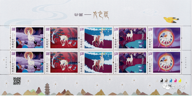 2023年的九色鹿邮票,是动画系列邮票中首套增加了二维追溯码的版票张,这与2014年的大闹天宫邮票的动画二维码不是一个概念。