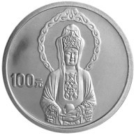 “观音”幻彩金币系列,2004年推出的最后一款,名“白衣观音像”。 其背面图稿,由南京造币有限公司的周剑设计,上海造币有限公司的曾成沪雕刻,同时也用在1/10盎司铂币之上。 观世音菩萨为摄化而自在示现的三十三种形象中,白衣观音是其中一种。白衣观音又名白处观音、白住处观音,是观音菩萨呈现的诸多相貌之一。白色寓意纯净,象征观世音菩萨胸怀的菩提之心。关于白衣观音,相传远古之时,中原一带因战争造成无数无辜伤亡,孤魂野鬼,哀怨不断,百姓不得安宁。后在七月十五鬼节,观音以一袭白衣宝相现身,这这些冤魂进行了超度。由此,白衣观音法相象征观世音菩萨,接引众生往生西方极乐世界的纯净的菩提之心。 从字面上理解,白衣观音最显著特征,应该是身穿的白衣、白裙,以及身后白色的披帛。目前能看到的白衣观音法相,无论是绘画、雕塑或其他艺术表现形式,也都以此作为与其他观音化身区别的重要特征。2004版“白衣观音像”,铂币材质本身就是纯白色泽,因此在表述上没有任何问题,但幻彩金币以金为材质,其色泽为纯黄,想要准确体现白衣之“白”,有一定的困难。好在有幻彩之“彩”,可以以对比的形式,将“白衣”进行相对映衬。币面上的幻彩,主要表现于观音周身与圆光两侧的镜面,由肘部起始,逐步向上,以其变动的色彩,强调了外在的“白衣”形式,和内在的“纯净”本质。由于幻彩的映照,更突出的观音能慈悲济助、消灾解厄的神秘力量。 从铸造的角度,先进的幻彩工艺,通常一次成型。制作过程中,采用高解析率的点矩全息技术,或直接在模具上雕刻出细微线条,利用其色泽映照变化,生出丰富的幻彩效果。幻彩不仅仅是工艺上的需要,美观上的需要,也能起到一定的防伪功能。 从构图角度,“白衣观音像”并没有什么特别之处,币面主图,为半身“观音”造象。但此“观音”,非我们经常看到的女性化身,而是偏向于男性色彩,面部丰满,鼻深高隆,眉长眼大,虽也温婉慈详,但周身流露的,更多的是“佛”的威严。从其造像特点看,此“白衣观音”为宋或更早些时候的造像,而宋 以后,流传于中国的观音,才由男性菩萨转变成女性菩萨,最终定格于芸芸众生供奉的慈详女神。(供稿:宁波市金鑫金银饰品公司)