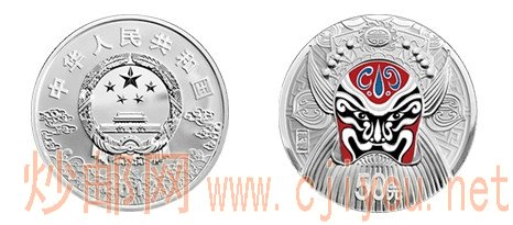 在中国京剧脸谱彩色金银纪念币(第3组)中“钟馗”脸谱彩色圆形精制银币以纯银5盎司的姿态面世,其正面图案为中华人民共和国国徽及海水江牙、祥云纹样组合设计,并刊国名、年号;背面图案为浩然正气、刚正不阿、不惧邪祟的“钟馗”脸谱造型(局部彩色),并刊“钟馗”中文字样及面额。