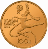按题材分类,1989年发行的“第11届亚运会”系列金银币第1组是典型“体育”大类,但“女子彩带操”金币,给人的观感,又可以归类于“艺术”。以艺术的手法设计体育题材,编号“1989-0301”的这款纪念金币,为“亚运”系列,开了一个好头。 细分下来,“第11届亚运会”系列金银纪念币第1组是“体育”大系列中单行“亚运”分支。在这之前,“体育”系列金银纪念币上亮相过“冬奥会”,亮相过“世界杯足球赛”,亮相过“奥运会”。专门展示亚洲运动风采,此为第一款,而“女子彩带操”,又是第一款中的第一币。 “女子彩带操”币名,源自《中华人民共和国贵金属纪念币图录》(西南财经大学出版社)。但它的准确性,值得商榷。严格地说,它归类于女子运动员特有项目艺术体操,艺术体操具体分为5项,其中的带操,也就是币名“女子彩带操”,另外4项分别为绳操、球操、圈操和棒操。1984年杉矶奥运会,艺术体操被列为正式比赛项目。 艺术体操以美为主要展示,女子的妩媚,女子的柔美,女子的艳丽,在艺术体操中,都能得到淋漓尽致地展现。而带操比赛手持的彩带,又为这种美提供了更大发挥空间。“女子彩带操”金币的直径为23毫米,设计师选取的是最佳表现角度:运动员右膝前屈,左腿后展,以跳跃的身姿凌空于币面中端。她的左臂优雅前伸,手做兰花指,在半空中美丽绽放。最具神奇的是左手高持的彩带,由头部上方舒缓而落,生出带有梦幻色彩的曲线。而浮于运动员脸上的灿烂笑意,又为币面增添了许多大气的优雅。这是体育运动力的展示,也是艺术表演美的展示。币面上端,第11届亚运会吉祥物熊猫盼盼,也以优美而轻盈的艺术体操之姿,与币面运动员的表演,进行了对称的呼应。 艺术体操吸收了芭蕾舞、现代舞、民间舞和杂技等精华,能培养运动员的力量、灵巧、节奏感等诸多素质。艺术体操的带,由棍、尼龙绳或带构成。带长6米。表演过程中,以绕环、螺形、抛接、摆动、跳跃、平衡、转体、8字以及蛇形等动作为主。在体育赛事中,包括带操在内的艺术体操,以力与美的无缝对接,给人以美的享受。 可惜的是,第11届亚运会上,中国运动员表演欠佳,没有取得预想的成绩。(供稿:宁波市金鑫金银饰品公司) |
