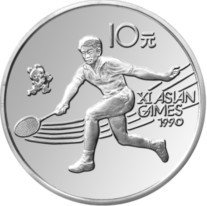 此前一年,1988年发行的“第24届奥运会”5枚金银币,4女性1中性,典型是阴盛阳衰的暗讽。也必须承认,1980年代,中国体育界阴盛阳衰现象确实严重,但在中国现代贵金属纪念币上过于强调,多少有些伤男性的自尊。1989年问世的“第11届亚运会”系列金银纪念币第1组,1金4银5款品种,3枚男性,2枚女性,完全将传统观念颠覆了过来。 其实,男子体育运动也有可圈可点之处,比如男子羽毛球。其中赵剑华曾获1985年全英羽毛球公开赛以及1986年汉城亚运会男单冠军,李永波与田秉毅两夺1987年、1989年世界锦标赛男子双打冠军。所以,“第11届亚运会”系列第1组中的4枚重27克的银币,列“男子羽毛球”在头一位,有其充足而恰当的理由。 “男子羽毛球”银币的币面设计,巧妙而艺术,后置背景为5根等距离的平行横线,横线由羽毛球拍顶端缓缓上扬姿,逆运动员跑动的位置,流向币面右侧。这是种暗喻手法,设计师将男子羽毛球的征战,喻为一首进取之歌,不屈不挠努力,奋力顽强拼博,最终爆发至歌曲高潮。果然,1990北京亚运会,男子羽毛球队全胜而归,分别夺得男子单打(赵剑华)、男子双打(田秉毅、李永波)和男子团体3项冠军。 结局是辉煌的,过程却是艰难的。“男子羽毛球”银币的币面,就是艰难过程中的局部特写:运动员右手握拍向下,呈“海底捞月”之势,正奋力抢救即将落地之球。运动员全身动作,包括前倾的上半身,向前呈半屈之姿的左腿,以及向后舒展的左臂、向后半抬的右腿,都是为“海底捞月”抢占跑位。看似是半转的侧身,却最能体现运动员运动状态。专业解释:“羽毛球是一项隔着球网,使用长柄网状球拍击打平口端扎有一圈羽毛的半球状软木的室内运动。”但在运动过程中,要求运动双方在短时间对瞬息万变的球路作出判断,果断地进行反击。高规格的羽毛球赛,是力量的较量,也是智慧的较量,还是精神的较量。“男子羽毛球”币面,重点表现的,就是这样的一场较量。虽然交战的另一方没有在币面出现,但赛场上的激烈,赛场上的抗争,通过运动员不敢有半点松懈的面部表情,已完完全全表达了出来。 第11届亚运会吉祥物――熊猫盼盼,在币面既是吉祥物,又是运动员为之苦苦争夺的羽毛球。一箭双雕,既有深长的寓意,又起到了简洁画面的效果。(供稿:宁波市金鑫金银饰品公司)