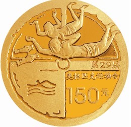 “第29届奥林匹克运动会”系列金银纪念币第二组中的3款金币,5盎司金币单独成篇,属于独立板块。两枚1/3盎司金币,与之前、之后两组的4枚金币,是贯穿始终的整体策划,它们归类于另一组,也是前后相衔的微型系列。这个微型系列的主线,只有一个字,就是表达人和动物筋肉效能的“力”。 这个“力”,源自传统体育文化,它类似于儒道释,有其基于人性论的对人的终极关怀。这也恰恰是中国传统体育与外国各类技击形式的区别所在。 相比之下,编号为“2007-0602”的“古代游泳”金币,表现得似乎更加充分,也更加完善。币面主图“游水”的造型,取自甘肃敦煌石窟第420窟,绘自1400年前的隋代壁画。并不是原样复制,而是现代艺术眼光的截取与展示。泳者只是在腰间束了块布料,上身赤裸,就沉到水中来了。姿势也非常独特,双臂和上抬,双足上翘,似是下沉,又似是上浮,呈自由潜水之态。而币面设计的妙思,在于“破”的运用,两位泳者上翘的双足,在币面,巧妙地“破”到外环之上。规则打乱,画面却没有丁点杂乱之感。恰恰因为有这一“破”,反而流溢出许多生动。 而币面穿越时空凝固的这一瞬间,又有两条造型古拙的鱼,抬着小头,嘟着小嘴,逆水而上,翘身相迎两位泳者。虽违背于常理,但并不唐突。加上沿外环淡淡勾画出来的非规则虚线,水的感觉出来了,景的感觉出来了,情的感觉也出来了。设计者采用中国传统绘画散点透视技巧,藏巧于拙,表达出他们设计理念的核心――人类与大自然的共融和谐。 “古代游泳”金币背面图案,整体为瓦当造型,分上下两个区域,其上为中国古代游泳运动造型。中间横档之右,阴刻楷体“第29届”文字。下又分左右,右半凸刻楷体“奥林匹克运动会”及黑体“150元”面额。左半凹刻简笔奥运会游泳图标。整体效果,古朴而简洁,典雅而大气。(供稿:海南国泉金币文化有限公司)