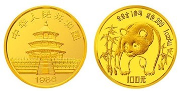 三是1986年 “中国工艺美术百花奖”金杯奖——1986年中国熊猫1盎司普制金币