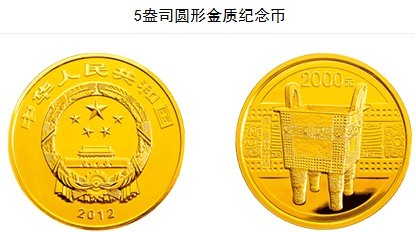 中国青铜器的发展横跨了约三千年的历史,精美的青铜制品、神秘瑰丽的青铜文化,像一颗璀璨的明珠熠熠生辉。中国人民银行特于2012年8月31日发行中国青铜器金银纪念币(第1组)一套。该套纪念币共5枚,其中金币2枚,银币3枚,均为中华人民共和国法定货币。