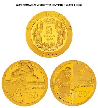 2008年的奥运会在中国历史上,是一件大事,为此,中国人民银行于2008年3月20日发行了第29届奥林匹克运动会贵金属纪念币(第3组)一套。该套纪念币共9枚,其中,1/3盎司金币2枚,5盎司金币1枚,10公斤金币1枚,1盎司银币4枚,1公斤银币1枚,均为中华人民共和国法定货币。