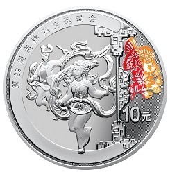 在中国,喜庆的时候,人们总爱用扭秧歌来表达自己的心意,奥运会是一个世界人们欢庆的运动会,中国便用这一种喜庆的方式迎接世界人民。中国人民银行于2008年3月20日发行第29届奥林匹克运动会贵金属纪念币(第3组)一套中,1盎司银质纪念币(4枚)背面图案之二为秧歌、传统工艺窗格及中国传统剪纸艺术造型,并刊“第29届奥林匹克运动会”中文字样及面额。 |