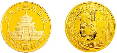 为纪念熊猫金币发行30周年,中国人民银行于2012年3月30日发行中国熊猫金币发行30周年金银纪念币一套。该套纪念币共5枚,其中金币3枚,银币2枚,特别是5盎司圆形金质纪念币最大发行量3000枚。相对于中国14亿人口数,相对于世界庞大的收藏爱好人群,如同沧海一粟,其珍贵与稀少可想而知。 |