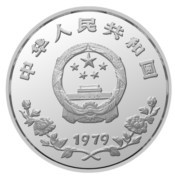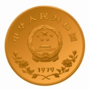 正面图案的整体设计简洁而大方。中为国徽,上环“中华人民共和国”国号,下缀“1979”年号。国徽图经贵金属币特殊浮雕工艺制作,在币面呈现出凸凹起伏的状态。从而具有感。本是平面的二维的国徽,具有立体的三维空间的透视效果。年号下端,又生出两枝向左右分开的花枝,花枝缠绕朝上,显示出蓬勃生机和旺盛的生命力。其寓意十分明确,在中国,在9600万平方公里大地之上,春风和煦,阳光普照,中国的儿童,如这花儿一般,正在美丽地绽开。言简意赅,直奔主题。(供稿:宁波市金鑫金银饰品公司)