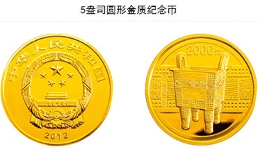 中国人民银行定于2012年8月31日发行中国青铜器金银纪念币(第1组)一套。该套纪念币共5枚,其中金币2枚,银币3枚,均为中华人民共和国法定货币。