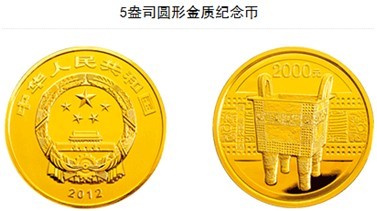 中国人民银行于2012年8月31日发行中国青铜器金银纪念币(第1组)一套。该套纪念币共5枚,其中金币2枚,银币3枚,均为中华人民共和国法定货币。其中5盎司圆形金质纪念币背面图案为商代兽面纹方鼎,衬以该器物兽面纹样等装饰组合设计,并刊“商•兽面纹方鼎”字样及面额。