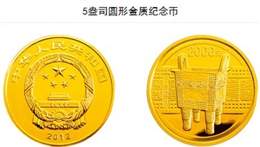 中国人民银行于2012年8月31日发行中国青铜器金银纪念币(第1组)一套。该套纪念币共5枚,其中金币2枚,银币3枚,均为中华人民共和国法定货币。其中5盎司圆形金质纪念币背面图案为商代兽面纹方鼎,衬以该器物兽面纹样等装饰组合设计,并刊“商•兽面纹方鼎”字样及面额。
