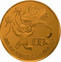 用纯金材质打造“放风筝的女童”金币画面,就更形象更具体,也更具有说服力。金是什么?金是一天阳光,或三月的明媚,或九月的艳丽。这阳光如金色的轻纱,满满实实,披在中国女童的脸上,身上,心中。幸福感觉因此满币面流溢。币面设计风格,也是一个“满”字,放飞风筝的女童,放飞天空的风筝,“国际拯救儿童基金会成立七十周年纪念”字样,以及“100元”面额,把直径只有23毫米的尺幅,撑得严严实实,这也恰恰符合主题的表达——中国,是成功拯救儿童的典范。虽“满”到严实,也不显得拥挤,设计师独到眼光,繁处繁杂,简处简练,繁简结合,恰到好处。