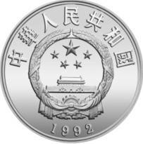 1992年“联合国国际环境保护年”银币正面图案,主题元素只有三个:一是国徽(图案),二是国名(中文),三是年号(数字)。除此之外,没有其他任何修饰。这也是中国的态度、立场与庄严承诺:和平、发展和保护环境是互相依存、不可分割的,中国政府会在环境与发展领域加强国际合作,为建立一种新的、公平的全球伙伴关系而努力。