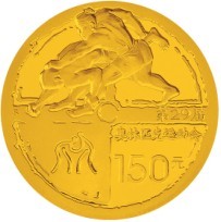 北京奥运会(第3组)金银币共有两枚1/3盎司金币,它们均把中国古代传统体育文化作为表现主体。正面图案都是中国传统对龙造型、本色第29届奥运会会徽和国名、年号,含纯金1/3盎司,直径23毫米,面额150元,成色99.99%,最大发行量各为60000枚。