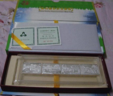 “苏州园林”纪念银币能够成为很多泉友钟爱的藏品实非偶然,是与其独特的美学特性相关的,笔者试图从其人文内涵、构图意蕴两个方面来简单阐述。 陈从周曾曰:江南园林甲天下,苏州园林甲江南。苏州蕴山川之秀,钟天地之气,聚人材之盛,形而为立体的画、 凝固的诗——苏州园林。苏州园林蕴含哲理、充满诗意,是“诗情”——文人情怀 的载体;移步换景,缩天地于尺寸,美景如画,充满了写意美,是“画意”之所在。“苏州园林”纪念银币,以表现苏州四大代表园林为主,以表现苏州四塔为辅,没有太多繁复、夸饰的画面设计,虽然有些采用了饱满的构图,但整体给人以简约诗韵、质感素雅的感觉。 在这套长方形的精制银币里,一亭、一台、一榭、一水、一山、一树,仿佛都可以看到姑苏吴文化的镌刻:那粉墙黛瓦、那蜿蜒曲径、那静水流深、那雕梁亭台、那千年古塔,无一不是温婉、深蕴 的吴文化的缩影,精细的雕刻,展现出工艺制作的严谨态度,每个细节都精巧细腻。 黑白二色,是道家最推崇的色彩。黑色是最深暗的色,是《易经》中的天色,而白色是最明亮的色彩,朴素、纯洁,它也是道家所重视的,这是一套完全不加任何人工色彩的本色银币,白银素淡优美、古朴典雅的特质更散发出淡泊的东方韵味,镜面为黑喷砂为白,这不就是浑然天成的黑白两色么?独特的题材内涵和东方文化底蕴赋予了这套四方连银币以清高、淡泊、致远的文人气质,与我们在市面上看到的白银制品有天壤之别。(供稿:宁波市金鑫金银饰品公司)