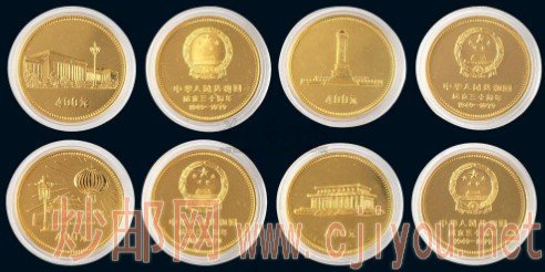 作为重大纪念性题材,“国庆”系列在中国现代金银币发行史上,占有特别重要的位置,尤其是1979年“中华人民共和国成立30周年”,它既是“国庆”系列金银币第一款,也是中国现代金银币第一币,为具有双重意义的“开门”之作。 33年过去,2012年,当“国庆”系列总计发行有4款品种时,再回过头看“中华人民共和国成立30周年”4枚金币,可以找到或此处或他处的种种不足。简而言之,题材选择思路相对狭窄,设计手法也有“概念”之嫌。 作为中国金银第一币,“中华人民共和国成立30周年”,材质特别考究,全套4枚均为纯金材质,重量也有1/2盎司之重,正面图案以“国徽”为主图,但有币名,无国名与年号。4幅背面图案,取材北京古今具有典型意义的建筑,分别为“天安门”、“人民英雄纪念碑”、“人民大会堂”和“毛主席纪念堂”。前3枚与“中华人民共和国成立30周年”多少还有联系,而后一枚,似与币面主题相隔略略有一些远,甚至有一些相悖。 “中华人民共和国成立30周年”4枚金币的设计,简单评价,叫“威严有余,生动不足”。之所以说“威严有余”,因为这4枚金币的画面,由于缺少背景的渲染与铺垫,因而画面缺乏丰富的层次感。表述语汇也接近于板着面孔的严肃。之所以说“生动不足”, 因为币面4处雄伟建筑,除“天安门”外,没有设置其他关联元素,因而缺少变化,缺少互动,也缺少祖国30年华诞的喜庆色彩。仅作为建筑本身,早前邮票设计有过多次表现,4枚金币最大突破,是将其纸质平面的二维空间,涅磐为立体透视的三维视觉效果。 33年前,1979年,正是改革开放之初,传统的僵化的政治观念,还没有完全突破“禁区”。中国现代金银币发行刚刚起步,无论设计抑或雕刻,自然也无法脱离当时的政治大环境,因此取材与创作,缩手缩脚,畏首畏尾,完全可以理解。(供稿:宁波市金鑫金银饰品公司)