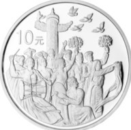 列“中华人民共和国成立50周年”3枚银币之中,编号为“1999-0605”的1盎司银币,币名“民族团结”。背面图案有动静两大元素。“动”是在币面载歌载舞的少数民族群体形象,“静”是高耸于币面正中的天安门华表。“动”另外还有一个附图,就是环华表上下飞舞的5只和平鸽。 “静”之物天安门华表,在“中华人民共和国成立50周年”中是二次表现,另一枚“锦绣中华”金币,则以它为主图。相比之下,华表在“民族团结”币面之上,只是一个相对配角,远衬于少数民族群体形象之后,为生动画面的一个点缀。但这个点缀,同时又具有典型的象征意义。华表立于天安门之左右,天安门是中国政治中心的标志性建筑。在“中华人民共和国成立50周年”大主题里,在少数民族群体载歌载舞环绕之中,它无疑据有权威的不可替代的核心位置。 载歌载舞呈心情欢乐状态的少数民族群体形象,一共有11位,依稀能辨别的,有朝鲜族、藏族、蒙古族、维吾尔族、汉族,等等。其中位于前列的藏族少女,手捧洁白的哈达,代表56个民族的人民,正向祖国献上深情的祝福。“11”这个数字,由“10”加“1”组成,而祖国的生日,正是每年的10月1日。同样的巧合,还有环华表而飞舞的和平鸽,不多不少正好5只,与国旗上的五星相对应。类似巧合,自然不是无意,而是设计师有心而为之。 中国现代金银币“国庆”系列,少数民族歌舞画面,也是第二次出现。1989年“中华人民共和国成立40周年”,20盎司金币的正面图案,国徽之下,也同样镌有“少数民族歌舞”。类似构图,最早出现于邮票票面。1962年至1963年,邮电部先后发行有3组“中国民间舞蹈”邮票,每套6枚,全部共18枚,展示了壮族捞虾舞、藏族弦子舞、苗族芦笙舞、畲族婚礼舞等多种少数民族歌舞形态。邮票设计为倪常明与卢天骄。(供稿:宁波市金鑫金银饰品公司) |