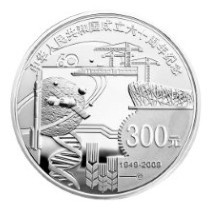 2009年9月16日,国庆节前半个月,中国人民银行发行3金2银“中华人民共和国成立60周年”纪念币,率先拉开祖国60华诞大庆盛典的序幕。其中之“大”之“盛”,是用两枚1公斤币来体现的。这也是中国现代金银币“国庆”题材,分量最重的两款品种。 编号“2009-0804”的1公斤银币,尺幅相对更大一些,币面直径为100毫米。两枚1公斤币的正面图案与背面图案相同,但背面图案的石膏雕刻,金币为王刚,银币则为深圳国宝造币厂的禹飞。进入2000年后,中国现代金银币的设计与雕刻,引进更为先进的竞标形式。但同一幅背面图案,用于3种不同规格,同时有3件石膏雕刻作品入选,类似情况,也相对罕见。相比之下,禹飞与1/4盎司金币钟承辛的雕刻更为接近,月球表现也同样为细密而逼真的肌理化处理。此外,币面左下端的面额与年代数字,以凸雕方式镌于“齿轮”之上,形成重复层面,并以反喷砂工艺亮化处理。而“——@”,则以凹雕形式表现。一凸一凹,对比效果十分强烈。 币面之上,传统元素与时尚元素相揉。如北京奥运奥运场馆鸟巢,独特而富有激情,体育赛事的兴盛,反映了新中国综合国力的兴盛。如动力火车,带着社会主义建设的热情,飞驶而来,飞驶而过。不变的是齿轮,它是共和国坚定而铿锵的步伐;不变的是麦穗,它是共和国永远成长着的希望。不变的是传统吊塔,只是力量更大,臂膀更长,目标也更加高远。夹杂于画面之中的DNA链与电子信息符号,则是是祖国与时代同步的标志。 可以这样概括,“中华人民共和国成立60周年”1公斤银币,看似是元素简单地堆砌,但它以简单的大气,以精练的概括,以独到的视角,把中华人民共和国成立60年所取得的辉煌成就,浓缩于币面之上。 2009年9月16日,我们陶醉于“国庆”金的喜庆之中,陶醉于“国庆”银的喜庆之中。(供稿:宁波市金鑫金银饰品公司)