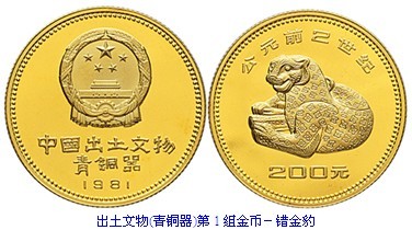 1968年,4件“错金豹”席镇出土于河北满城县陵山。1981年起,中国人民银行发行“中国出土文物(青铜器)”系列金银纪念币。而绝世的“错金豹”理所当然会成为其中一朵奇葩。