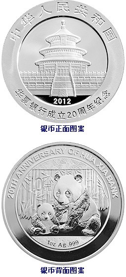 中国人民银行定于2012年10月18日发行华夏银行成立20周年熊猫加字金银纪念币一套。该套纪念币共2枚,其中金币1枚,银币1枚,均为中华人民共和国法定货币。