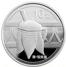 商弦纹盉是商代酒具之一,作为较为原始的青铜器,商弦纹盉灌注着古代人类的许多原始思想和文化,有着很大的历史价值。在最近发行的一套青铜器纪念币中,其中一枚便雕刻上了高贵端庄的商弦纹盉图案。