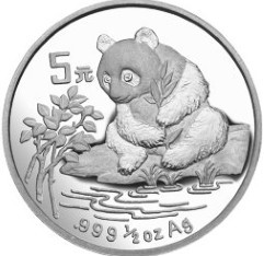 爱美是女人的天性,雌性熊猫,自然也绕不过这一关。不过雌性熊猫爱美,只能通过水面来表现,水是更深的山中流出来的,浸漫到生有水草的岸边。大熊猫本是坐在这儿准备美美享用嫩竹的,结果一扭头,看到了水中的倒影。那一刻,它无疑被自己的惊艳给镇住了:天啦,这水里边,怎么还会有一只与我长得一样好看的小姐?但确认这位美小姐就是自己时,熊猫咧着小嘴,开心地笑了起来。手中的嫩竹也忘了吃了,两只眼睛一动不动,就这样带着赞叹的神情,暗暗欣赏自己水中的倒影。类似构图,1995版“熊猫”也有一款,用作1盎司金币、1盎司银币和3枚小规格双金属币的背面图案。不过,那一款“熊猫”,体型更加肥硕,神态更加粗野,动作更加张扬,与这一款“熊猫”相比,雄性色彩更为浓烈。 |
