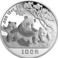 中国现代金银币“熊猫”系列,4枚大规格“熊猫”币,仅存的12盎司银币,在1997年,又在做最后的告别演出。这之后,中国现代金银币“熊猫”系列的舞台上,再看不到大规格币,或金或银,威严如将军的风采。 |