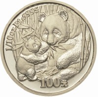 1/10盎司铂币前期也有发行,处女秀是1990年,之后中断,1993至1997又持续了5年。这是它第三次登台。可惜的是,到底还是跑龙套的小角色,仅仅以舞台上闪了一下脸,第二年又无声无息,不知所终。同样,刚刚混了个脸熟的1/2盎司钯币,这一年,也是它们告别“熊猫”舞台的最后演出。 |