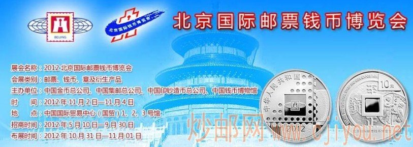 经中华人民共和国商务部、中国人民银行、中国邮政集团公司批准,由中国金币总公司、中国集邮总公司、中国印钞造币总公司、中国钱币博物馆联合主办的2012北京国际邮票钱币博览会将于2012年11月2日-4日在中国国际贸易中心举行。 |