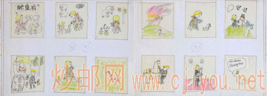 从这幅12开的连环画中,我们看出不一样的朱新建,原来他有着丰富扎实的国画功底和人物造型,甚至一颗童稚可爱的拳拳之心。不仅线条优美干脆,设色也是如此淡雅充满童趣,尤其在动态造型上型准意概,可观趣味性大于实用性。
