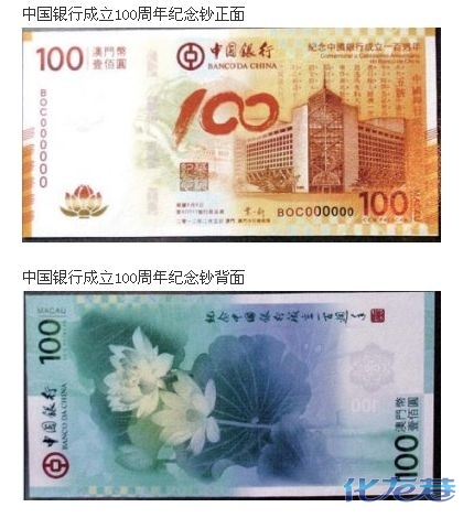 《中国银行股份有限公司发行纪念其成立100周年的纸币》行政法规草案许可中国银行为纪念其成立100周年,发行面额为澳门币100元的新纸币,发行限额为300万张。该纪念纸币将于2012年2月初发行。