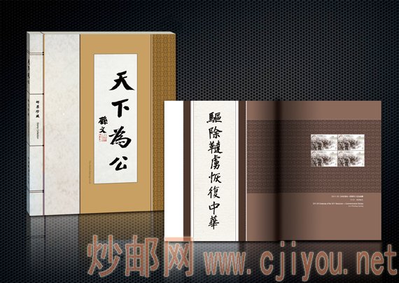 《天下为公》邮册 日期:2011-09-22 来源:CPI (中国集邮专卖店特供) 产品信息仅供参考,以实际发行产品为准! 名称: 《天下为公》邮册(中国集邮专卖店特供) 编号: 发行日期: 2011年10月10日 预售价: 230.00元 创意: crack 内容: 含内地发行四方连邮票一套、小型张一枚,版式2一版;香港、澳门发行《辛亥革命一百周年》邮票各一套,小型张各一枚;中港澳联合发行小本折;四枚版个性化邮票一版