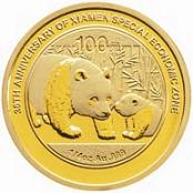 厦门经济特区建设30周年熊猫加字金银纪念币图案