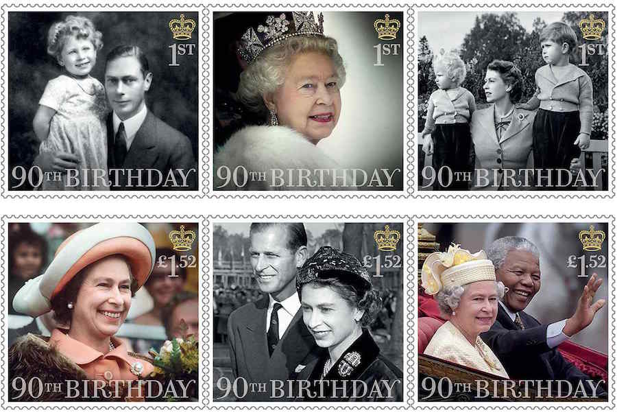 2016年4月21日,英国邮政为女王九十寿辰发行一套六枚纪念邮票。伊丽莎白二世 是现任英国女王,英联邦元首、国会最高首领。伊丽莎白二世全称“承上帝洪恩的大不列颠及北爱尔兰联合王国及其他领土和属地女王,英联邦元首,国教(圣公会)的捍卫者伊丽莎白二世”。她于1952年2月6日登基,1953年6月2日加冕女王,是英国在位时间最长的君主。2012年6月2日至5日,英国举办英女王钻禧庆典,纪念女王登基60周年。这次发行的六枚邮票的主题为:女王与父亲乔治六世(1930年拍摄的照片)、女王在2012年出席国会的内阁会议、女王与安妮公主和查尔斯王子(1952年拍摄的照片)、女王1977年访问新西兰、女王和丈夫爱丁堡公爵(1957年拍摄的照片)和女王与曼德拉(1996年拍摄)。这套邮票由Kate Stephens设计。 | |||