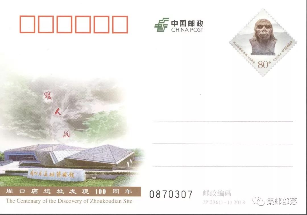 JP236《周口店遗址发现100周年》纪念邮资明信片