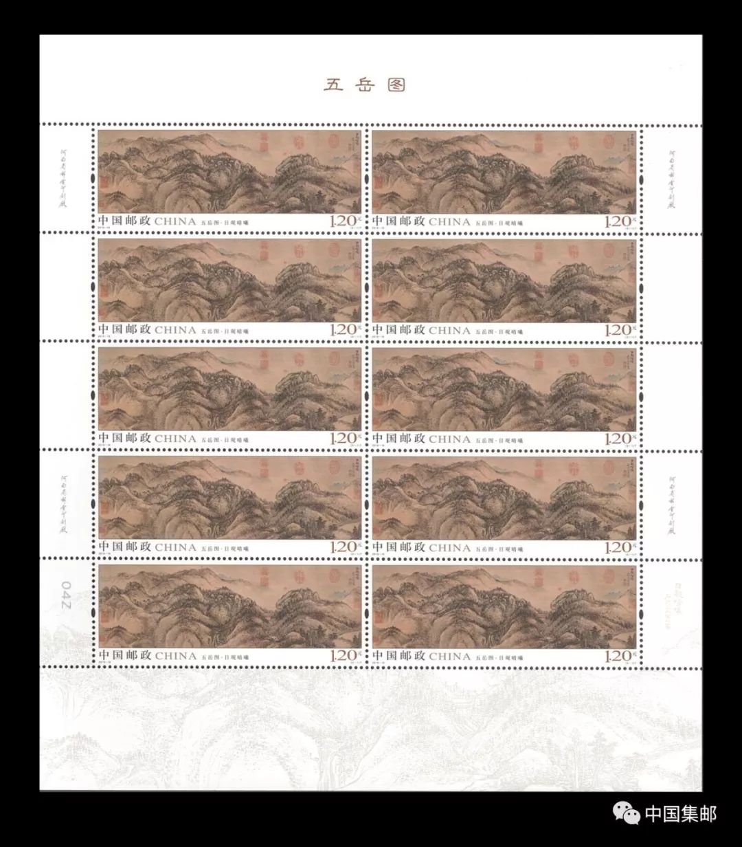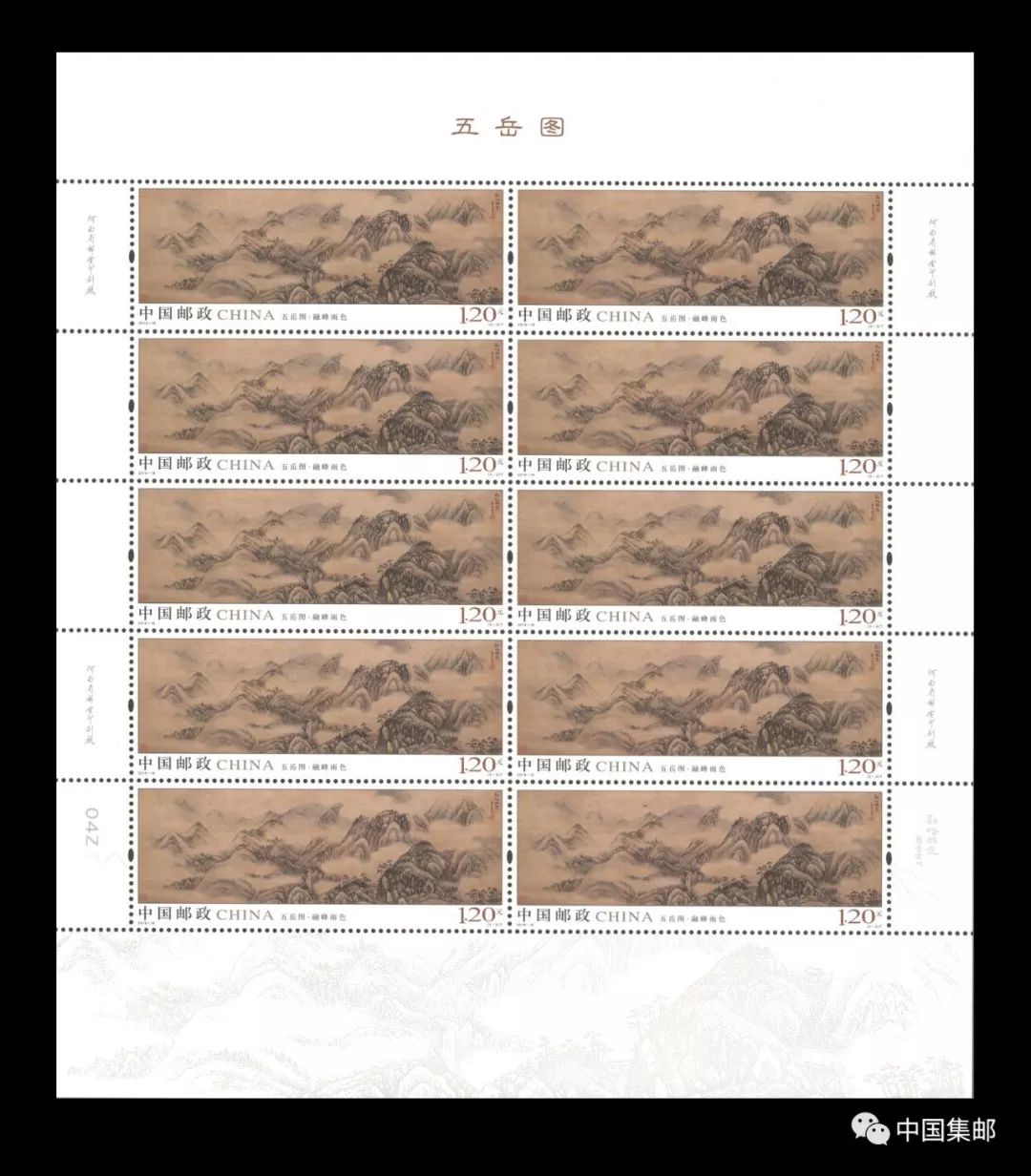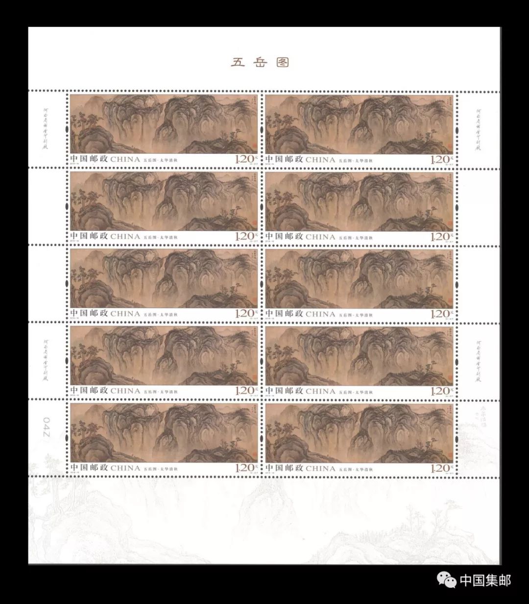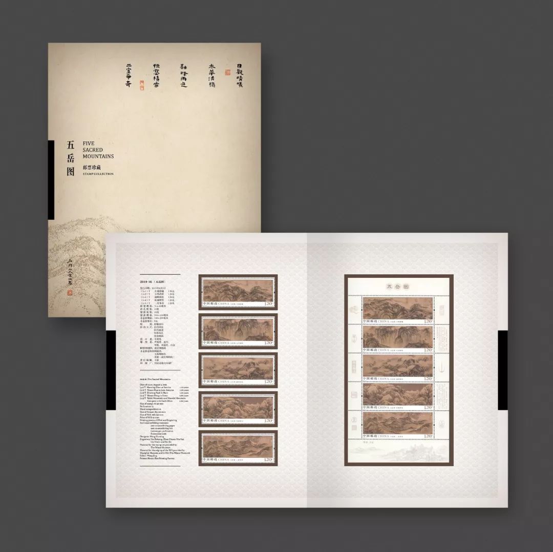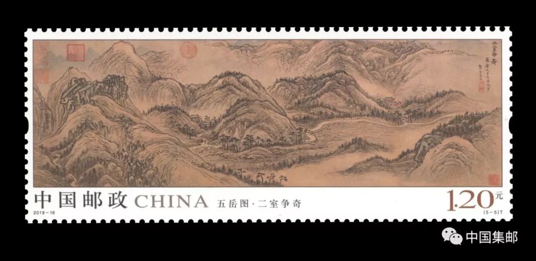 中国邮政定于2019年8月3日发行《五岳图》特种邮票1套5枚,小全张1枚。详情如下:
