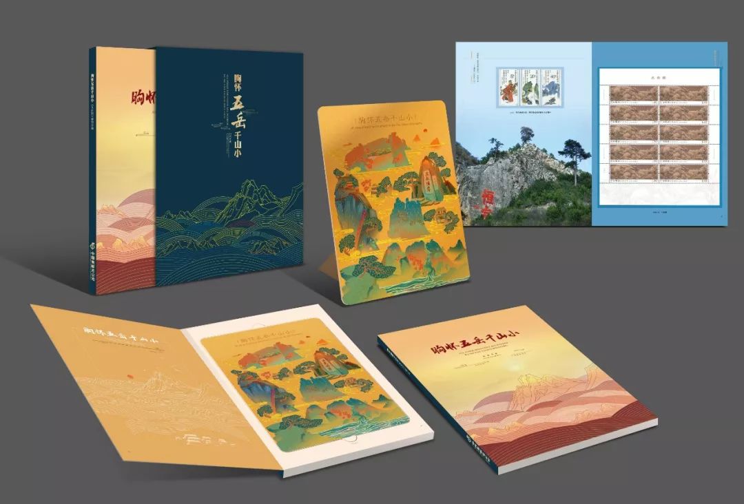 2、邮册收录《胸怀五岳千山小》冷烫金工艺画作,画作为原创手绘,展现五岳标志性景观及代表性建筑。产品采用冷烫金、折光等特种工艺制作,使画面更加立体、更具张力。本画作收录在邮册中,可从邮册中取出,摆放在办公室或家中。