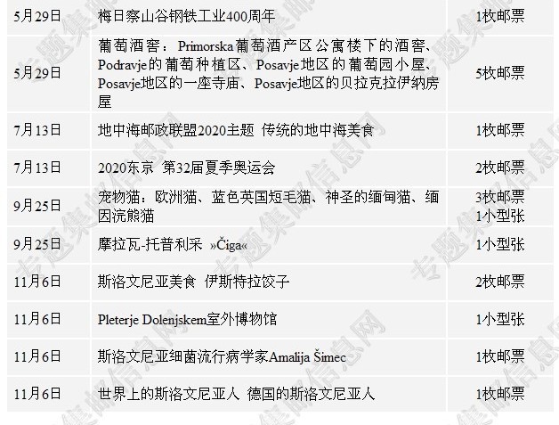 斯洛文尼亚2020年新邮发行计划 斯洛文尼亚2020年邮票发行计划...